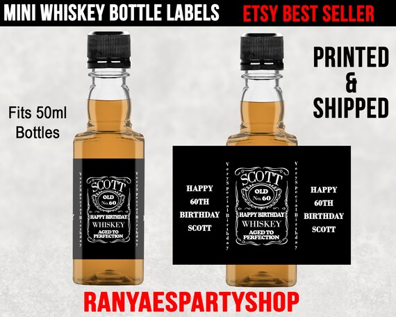 Personalized Birthday Liquor Bottle Label, 750ml or 50ml Mini Size ... Create a custom alcohol gift bottle with personalized labels sized to fit the 750ml or 50ml mini bottles of the famous brands. ***Ships in 1-2 business days. Consider choosing expedited shipping if you need your item quickly. Personalized items cannot be canceled or returned once printed/shipped.